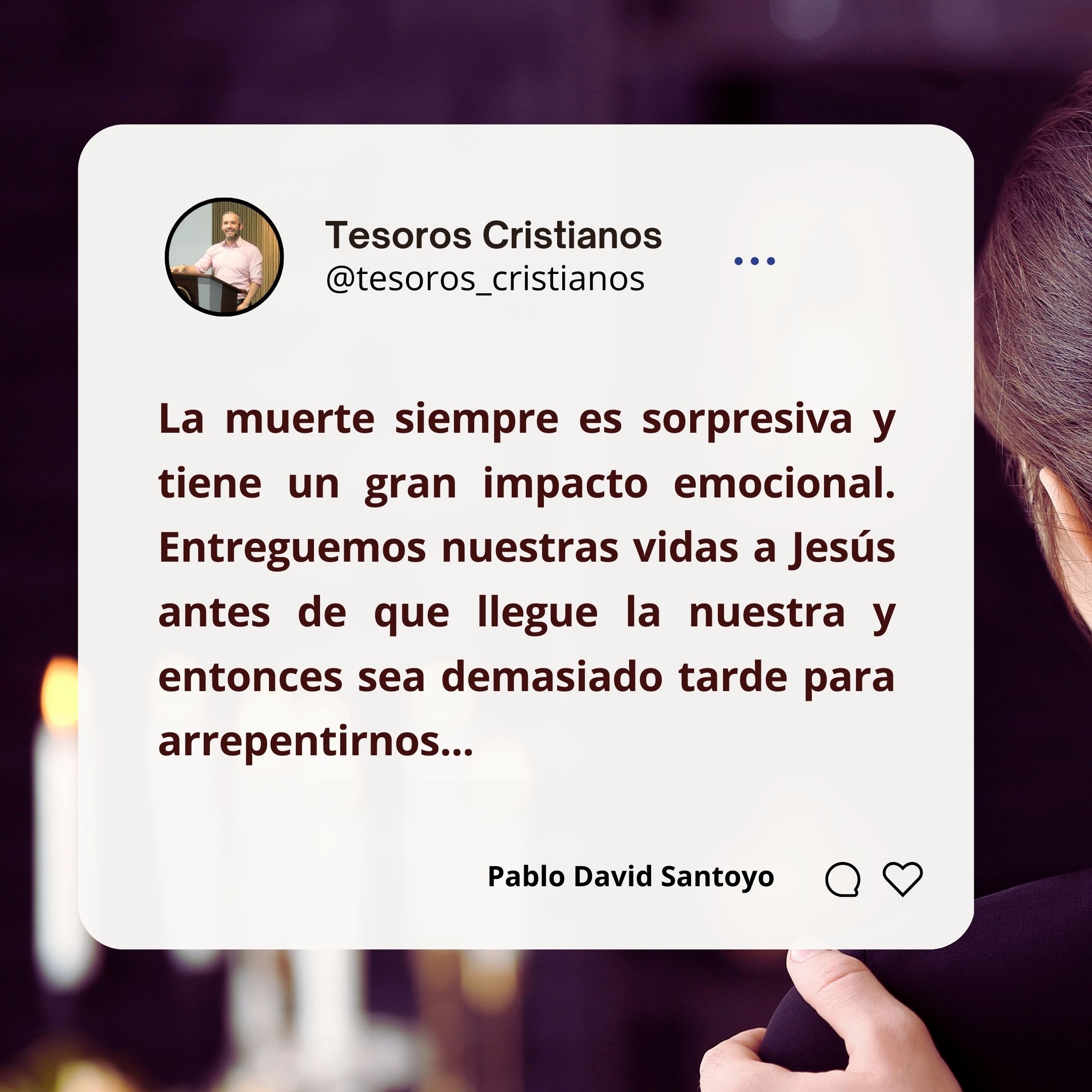 Tesoros Cristianos es un ministerio sin fines de lucro que nace con la visión de impactar la sociedad contemporánea con la revelación de Dios a través de la exposición de su verdad de una forma clara y convincente, haciendo uso de la palabra de Dios como fuente de la verdadera sabiduría y respaldada por un ministerio de integridad, fundada ya hace 15 años y desde entonces se encarga en la distribución de recursos para la edificación del cuerpo de Cristo.